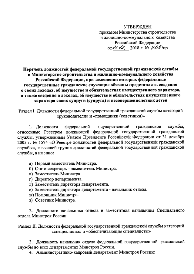 "ОБ УТВЕРЖДЕНИИ ПЕРЕЧНЯ ДОЛЖНОСТЕЙ ФЕДЕРАЛЬНОЙ ГОСУДАРСТВЕННОЙ ГРАЖДАНСКОЙ СЛУЖБЫ В МИНИСТЕРСТВЕ СТРОИТЕЛЬСТВА И ЖИЛИЩНО - КОММУНАЛЬНОГО ХОЗЯЙСТВА РОССИЙСКОЙ ФЕДЕРАЦИИ, ПРИ ЗАМЕЩЕНИИ КОТОРЫХ ФЕДЕРАЛЬНЫЕ ГОСУДАРСТВЕННЫЕ ГРАЖДАНСКИЕ СЛУЖАЩИЕ ОБЯЗАНЫ ПРЕДСТАВЛЯТЬ СВЕДЕНИЯ О СВОИХ ДОХОДАХ, ОБ ИМУЩЕСТВЕ И ОБЯЗАТЕЛЬСТВАХ ИМУЩЕСТВЕННОГО ХАРАКТЕРА, А ТАКЖЕ СВЕДЕНИЯ О ДОХОДАХ, ОБ ИМУЩЕСТВЕ И ОБЯЗАТЕЛЬСТВАХ ИМУЩЕСТВЕННОГО ХАРАКТЕРА СВОИХ СУПРУГИ (СУПРУГА) И НЕСОВЕРШЕННОЛЕТНИХ ДЕТЕЙ"