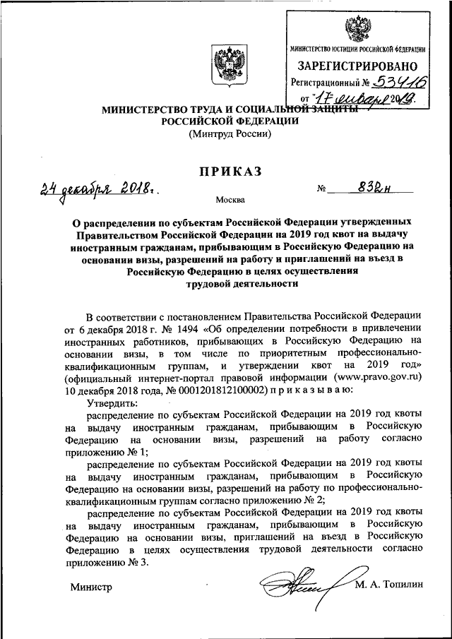 ПРИКАЗ Минтруда РФ от 24.12.2018 N 832н