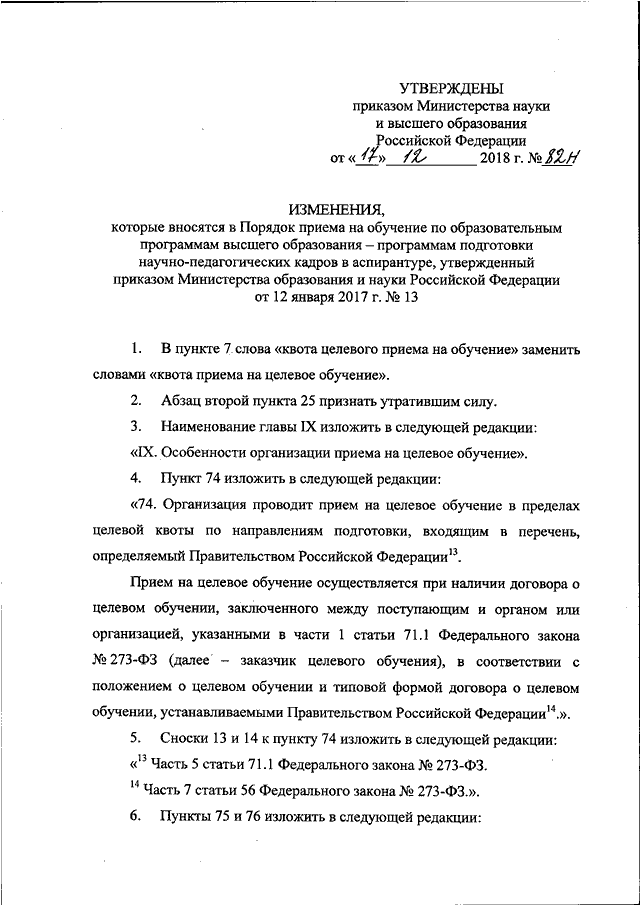 ПРИКАЗ Минобрнауки РФ от 17.12.2018 N 82н