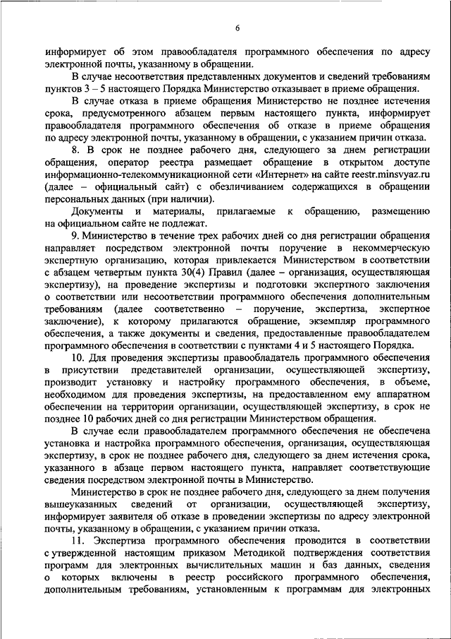 "ОБ УТВЕРЖДЕНИИ ПОРЯДКА И МЕТОДИКИ ПОДТВЕРЖДЕНИЯ СООТВЕТСТВИЯ ПРОГРАММ ДЛЯ ЭЛЕКТРОННЫХ ВЫЧИСЛИТЕЛЬНЫХ МАШИН И БАЗ ДАННЫХ, СВЕДЕНИЯ О КОТОРЫХ ВКЛЮЧЕНЫ В РЕЕСТР РОССИЙСКОГО ПРОГРАММНОГО ОБЕСПЕЧЕНИЯ, ДОПОЛНИТЕЛЬНЫМ ТРЕБОВАНИЯМ, УСТАНОВЛЕННЫМ К ПРОГРАММАМ ДЛЯ ЭЛЕКТРОННЫХ ВЫЧИСЛИТЕЛЬНЫХ МАШИН И БАЗАМ ДАННЫХ, СВЕДЕНИЯ О КОТОРЫХ ВКЛЮЧЕНЫ В РЕЕСТР РОССИЙСКОГО ПРОГРАММНОГО ОБЕСПЕЧЕНИЯ, УТВЕРЖДЕННЫМ ПОСТАНОВЛЕНИЕМ ПРАВИТЕЛЬСТВА РОССИЙСКОЙ ФЕДЕРАЦИИ ОТ 23 МАРТА 2017 Г. N 325, И О ВНЕСЕНИИ ИЗМЕНЕНИЙ В ПОЛОЖЕНИЕ ОБ ЭКСПЕРТНОМ СОВЕТЕ ПО РОССИЙСКОМУ ПРОГРАММНОМУ ОБЕСПЕЧЕНИЮ ПРИ МИНИСТЕРСТВЕ СВЯЗИ И МАССОВЫХ КОММУНИКАЦИЙ РОССИЙСКОЙ ФЕДЕРАЦИИ, УТВЕРЖДЕННОЕ ПРИКАЗОМ МИНИСТЕРСТВА СВЯЗИ И МАССОВЫХ КОММУНИКАЦИЙ РОССИЙСКОЙ ФЕДЕРАЦИИ ОТ 20 ИЮНЯ 2016 Г. N 269"