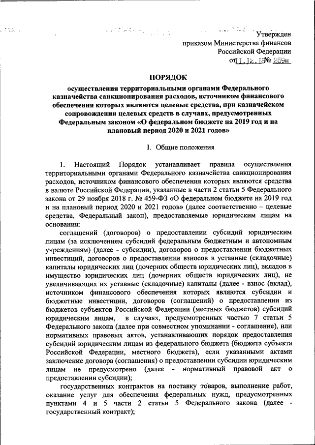 ПРИКАЗ Минфина РФ от 11.12.2018 N 259н