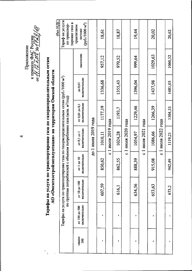 "ОБ УТВЕРЖДЕНИИ ТАРИФОВ НА УСЛУГИ ПО ТРАНСПОРТИРОВКЕ ГАЗА ПО