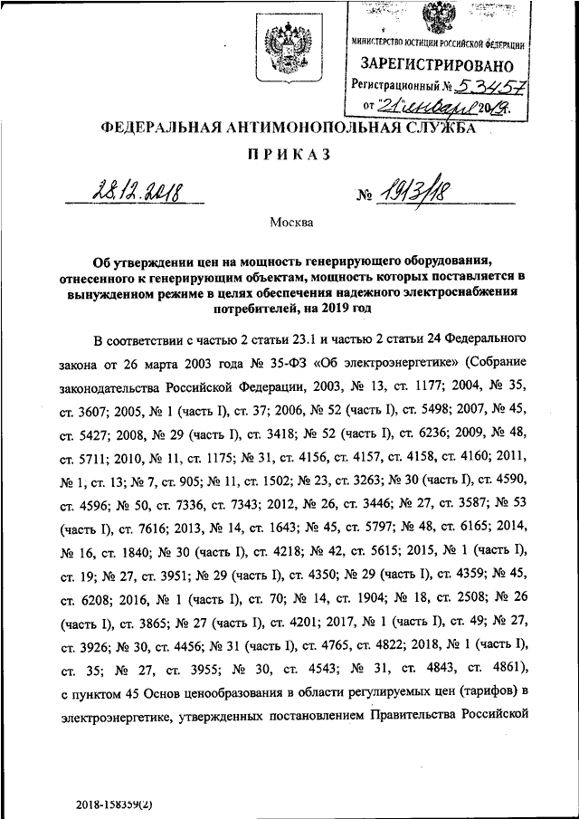 ПРИКАЗ Федеральной антимонопольной службы от 28.12.2018 N 1913/18