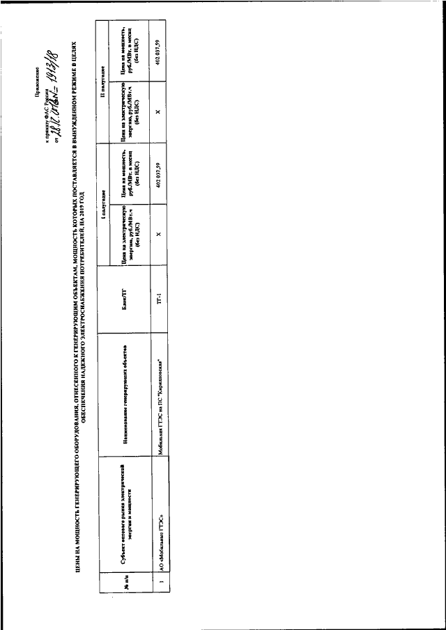 "ОБ УТВЕРЖДЕНИИ ЦЕН НА МОЩНОСТЬ ГЕНЕРИРУЮЩЕГО ОБОРУДОВАНИЯ,