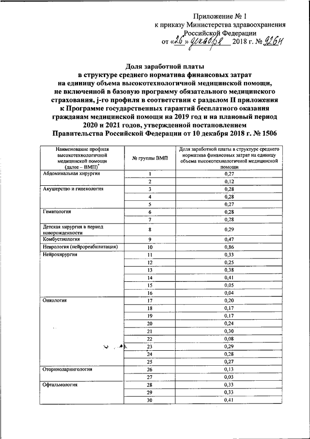 ПРИКАЗ Минздрава РФ от 26.12.2018 N 926н