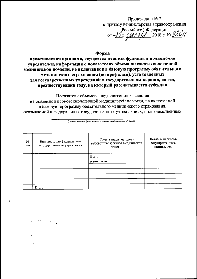 ПРИКАЗ Минздрава РФ от 26.12.2018 N 926н