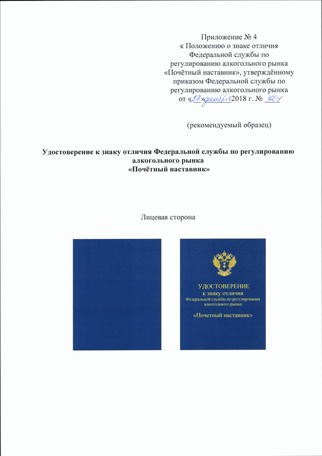 "ОБ УЧРЕЖДЕНИИ ЗНАКА ОТЛИЧИЯ ФЕДЕРАЛЬНОЙ СЛУЖБЫ ПО РЕГУЛИРОВАНИЮ АЛКОГОЛЬНОГО РЫНКА "ПОЧЕТНЫЙ НАСТАВНИК"
