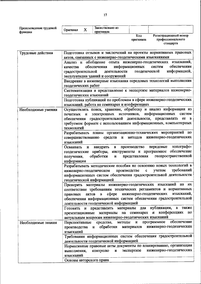 "ОБ УТВЕРЖДЕНИИ ПРОФЕССИОНАЛЬНОГО СТАНДАРТА "СПЕЦИАЛИСТ В ОБЛАСТИ ИНЖЕНЕРНО - ГЕОДЕЗИЧЕСКИХ ИЗЫСКАНИЙ"