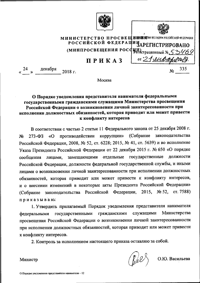 ПРИКАЗ Минпросвещения РФ от 24.12.2018 N 335