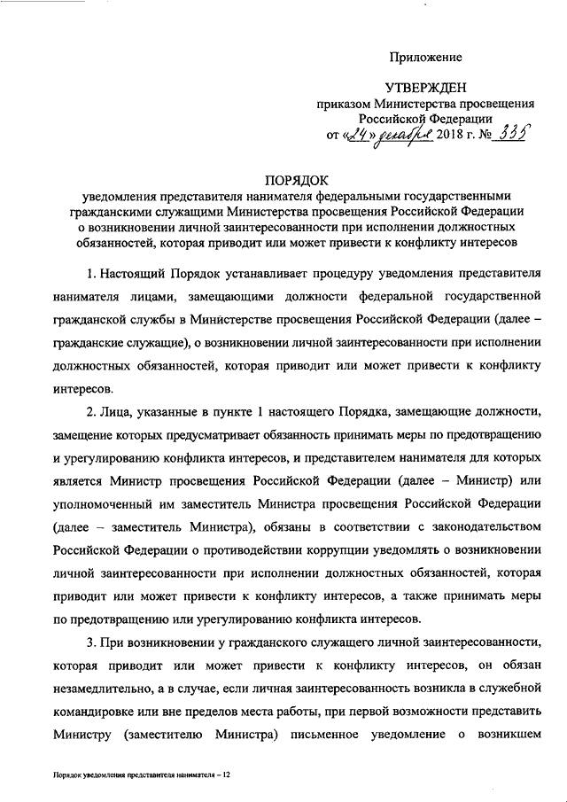 ПРИКАЗ Минпросвещения РФ от 24.12.2018 N 335