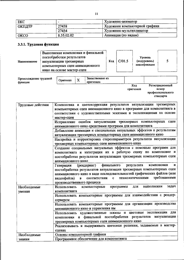 "ОБ УТВЕРЖДЕНИИ ПРОФЕССИОНАЛЬНОГО СТАНДАРТА "СПЕЦИАЛИСТ ПО ВИЗУАЛИЗАЦИИ В АНИМАЦИОННОМ КИНО"