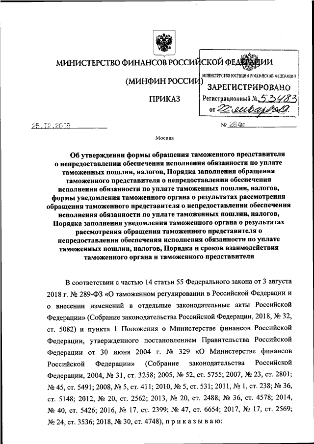 ПРИКАЗ Минфина РФ от 25.12.2018 N 284н