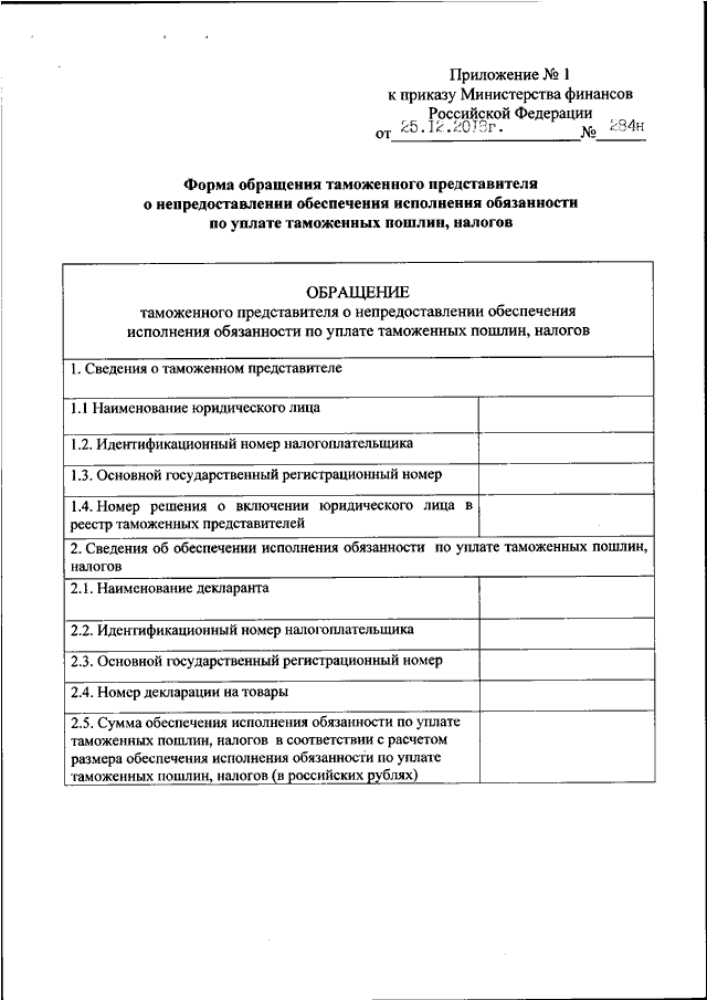 ПРИКАЗ Минфина РФ от 25.12.2018 N 284н