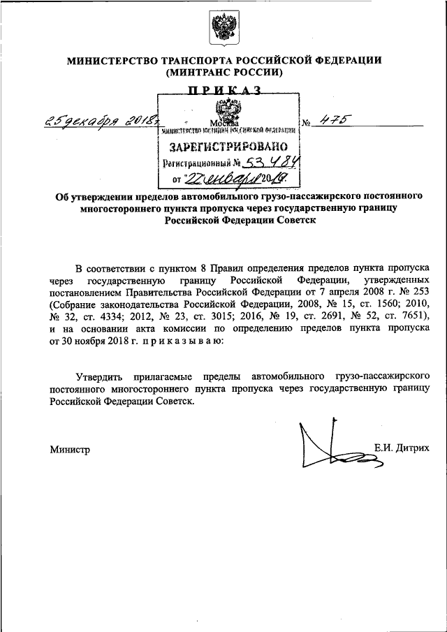 ПРИКАЗ Минтранса РФ от 25.12.2018 N 475