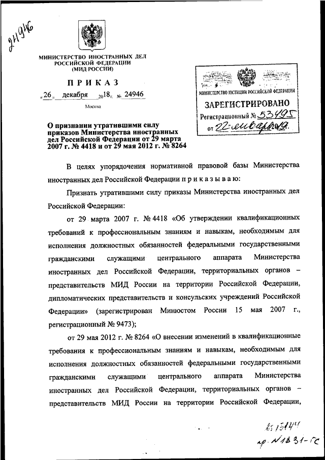 ПРИКАЗ МИД РФ от 26.12.2018 N 24946