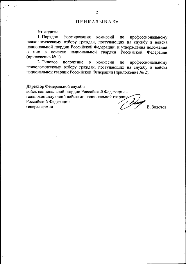 "ОБ УТВЕРЖДЕНИИ ПОРЯДКА ФОРМИРОВАНИЯ КОМИССИЙ ПО ПРОФЕССИОНАЛЬНОМУ ПСИХОЛОГИЧЕСКОМУ ОТБОРУ И УТВЕРЖДЕНИЯ ПОЛОЖЕНИЙ О НИХ, А ТАКЖЕ ТИПОВОГО ПОЛОЖЕНИЯ О КОМИССИИ ПО ПРОФЕССИОНАЛЬНОМУ ПСИХОЛОГИЧЕСКОМУ ОТБОРУ ГРАЖДАН, ПОСТУПАЮЩИХ НА СЛУЖБУ В ВОЙСКА НАЦИОНАЛЬНОЙ ГВАРДИИ РОССИЙСКОЙ ФЕДЕРАЦИИ"
