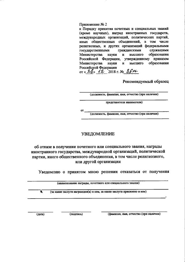 ПРИКАЗ Минобрнауки РФ от 28.12.2018 N 86н