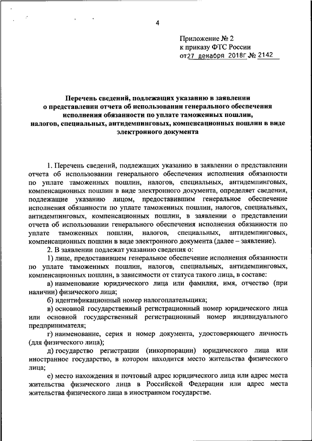 ПРИКАЗ ФТС РФ от 27.12.2018 N 2142