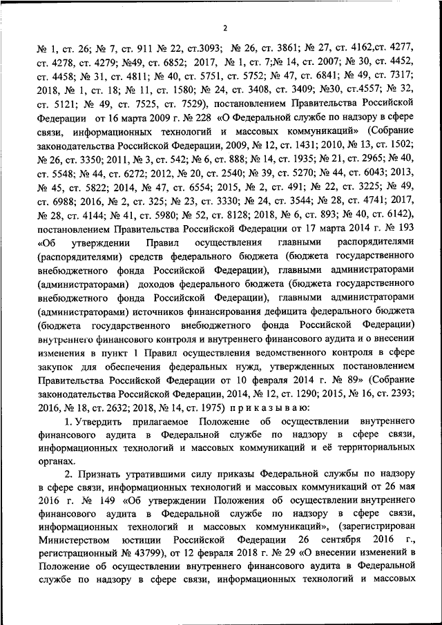 "ОБ УТВЕРЖДЕНИИ ПОЛОЖЕНИЯ ОБ ОСУЩЕСТВЛЕНИИ ВНУТРЕННЕГО ФИНАНСОВОГО АУДИТА В ФЕДЕРАЛЬНОЙ СЛУЖБЕ ПО НАДЗОРУ В СФЕРЕ СВЯЗИ, ИНФОРМАЦИОННЫХ ТЕХНОЛОГИЙ И МАССОВЫХ КОММУНИКАЦИЙ И ЕЕ ТЕРРИТОРИАЛЬНЫХ ОРГАНАХ"