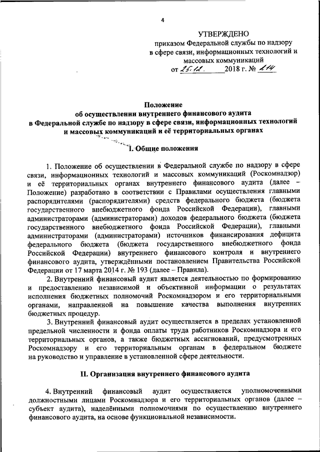 "ОБ УТВЕРЖДЕНИИ ПОЛОЖЕНИЯ ОБ ОСУЩЕСТВЛЕНИИ ВНУТРЕННЕГО ФИНАНСОВОГО АУДИТА В ФЕДЕРАЛЬНОЙ СЛУЖБЕ ПО НАДЗОРУ В СФЕРЕ СВЯЗИ, ИНФОРМАЦИОННЫХ ТЕХНОЛОГИЙ И МАССОВЫХ КОММУНИКАЦИЙ И ЕЕ ТЕРРИТОРИАЛЬНЫХ ОРГАНАХ"