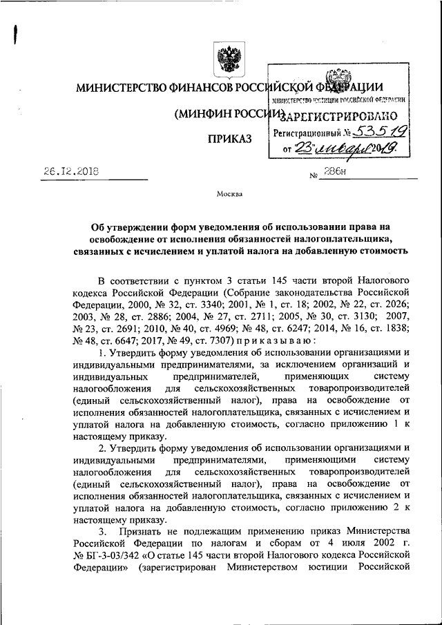 ПРИКАЗ Минфина РФ от 26.12.2018 N 286н