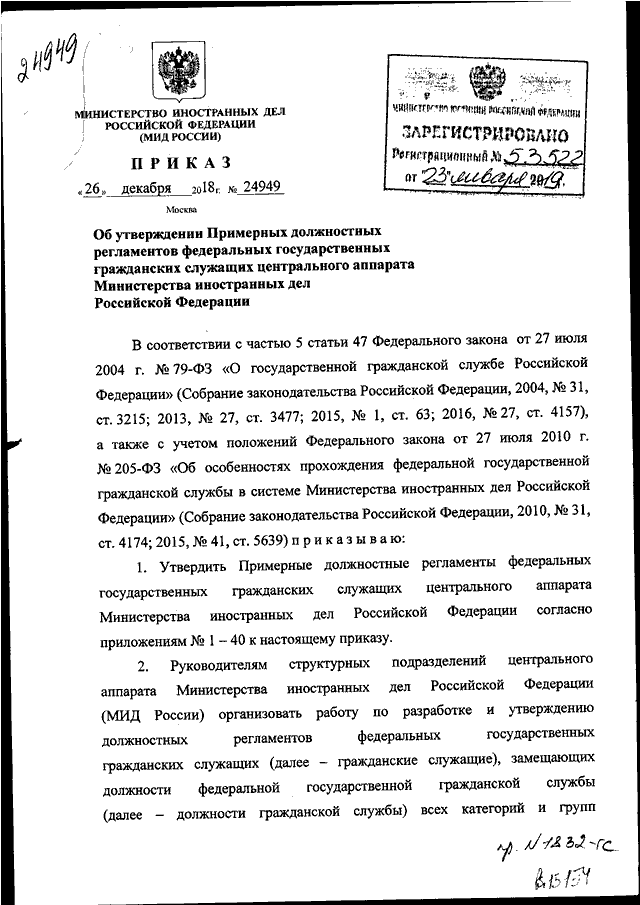 ПРИКАЗ МИД РФ от 26.12.2018 N 24949