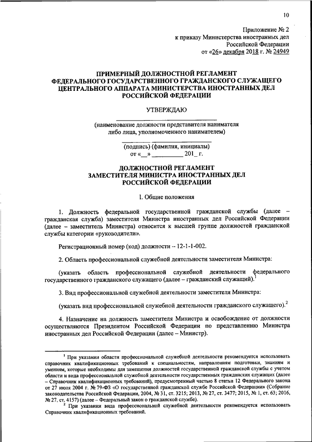 ПРИКАЗ МИД РФ от 26.12.2018 N 24949