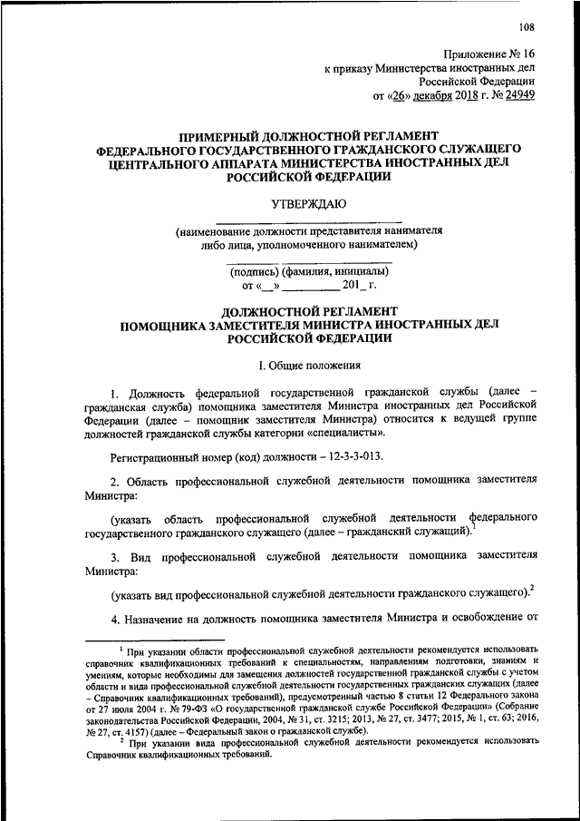 ПРИКАЗ МИД РФ от 26.12.2018 N 24949
