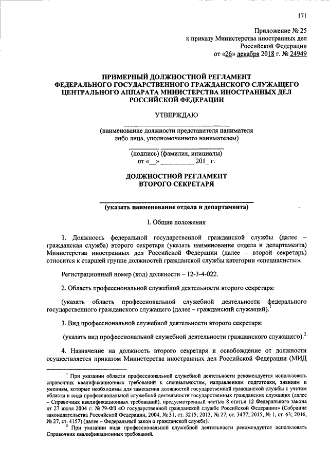 ПРИКАЗ МИД РФ от 26.12.2018 N 24949