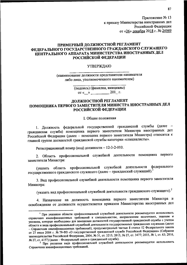 ПРИКАЗ МИД РФ от 26.12.2018 N 24949