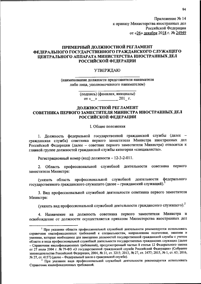 ПРИКАЗ МИД РФ от 26.12.2018 N 24949