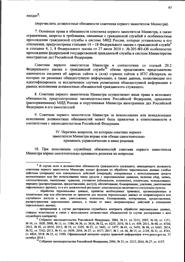 "ОБ УТВЕРЖДЕНИИ ПРИМЕРНЫХ ДОЛЖНОСТНЫХ РЕГЛАМЕНТОВ ФЕДЕРАЛЬНЫХ ГОСУДАРСТВЕННЫХ ГРАЖДАНСКИХ СЛУЖАЩИХ ЦЕНТРАЛЬНОГО АППАРАТА МИНИСТЕРСТВА ИНОСТРАННЫХ ДЕЛ РОССИЙСКОЙ ФЕДЕРАЦИИ"