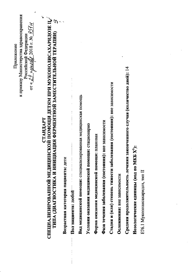 "ОБ УТВЕРЖДЕНИИ СТАНДАРТА СПЕЦИАЛИЗИРОВАННОЙ МЕДИЦИНСКОЙ ПОМОЩИ ДЕТЯМ ПРИ МУКОПОЛИСАХАРИДОЗЕ II ТИПА (ДИАГНОСТИКА И ИНИЦИАЦИЯ ФЕРМЕНТНОЙ ЗАМЕСТИТЕЛЬНОЙ ТЕРАПИИ)"