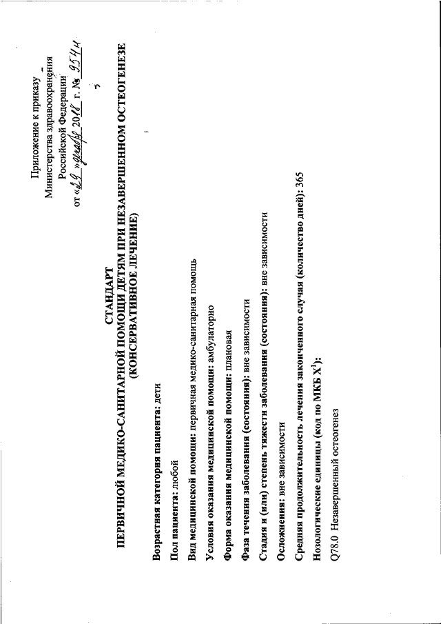 "ОБ УТВЕРЖДЕНИИ СТАНДАРТА ПЕРВИЧНОЙ МЕДИКО - САНИТАРНОЙ ПОМОЩИ ДЕТЯМ ПРИ НЕЗАВЕРШЕННОМ ОСТЕОГЕНЕЗЕ (КОНСЕРВАТИВНОЕ ЛЕЧЕНИЕ)"