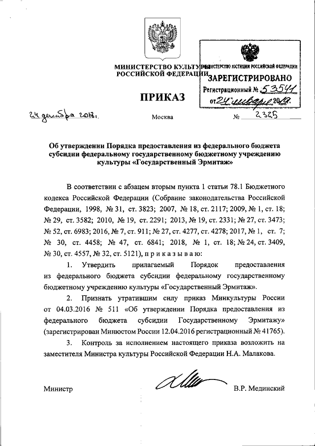 ПРИКАЗ Минкультуры РФ от 24.12.2018 N 2325