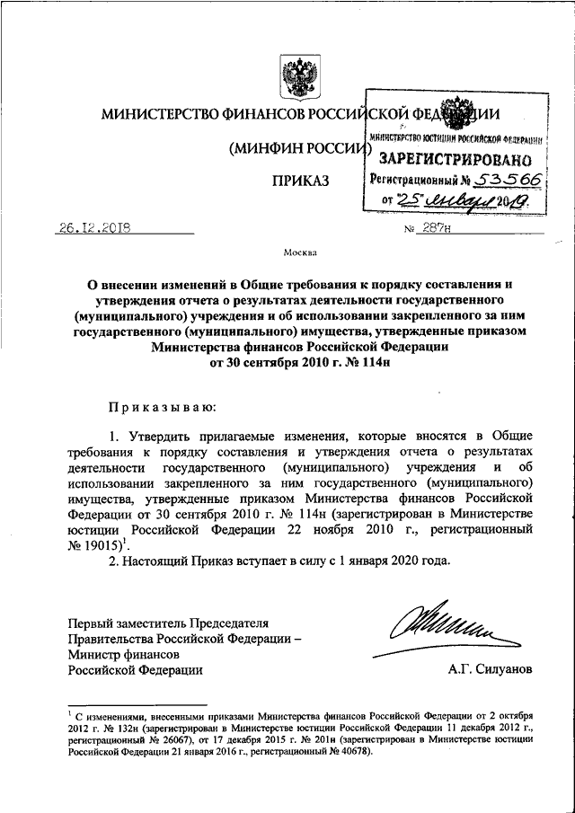 ПРИКАЗ Минфина РФ от 26.12.2018 N 287н