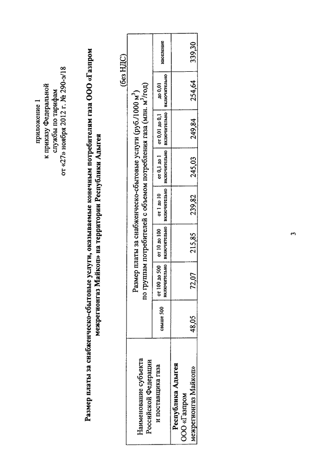 ПРИКАЗ ФСТ РФ от 27.11.2012 N 290-э/18