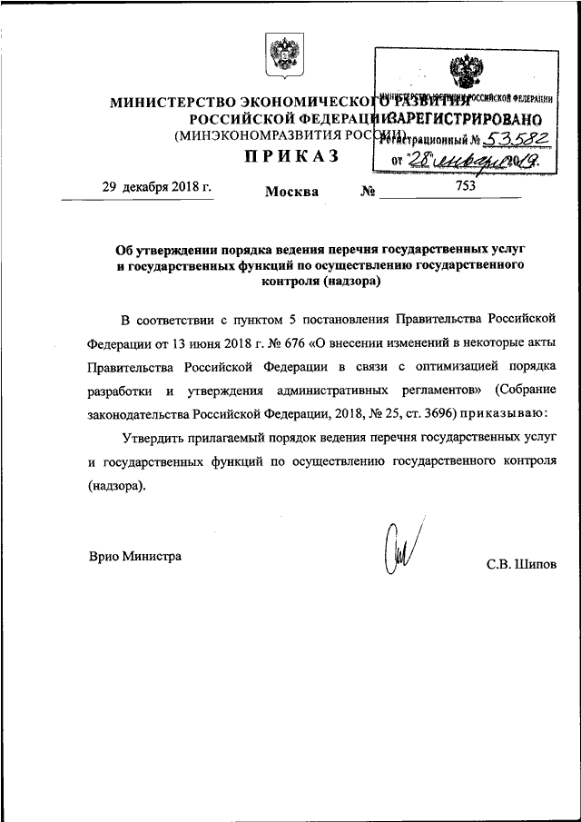 ПРИКАЗ Минэкономразвития РФ от 29.12.2018 N 753