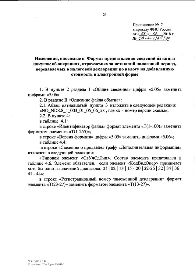 ПРИКАЗ ФНС РФ от 28.12.2018 N СА-7-3/853@