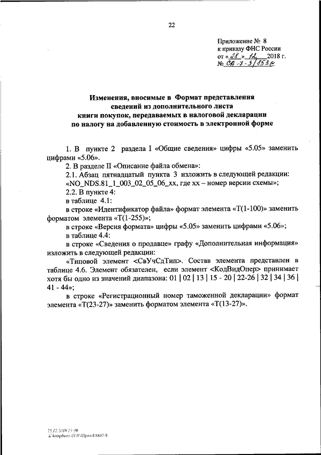 ПРИКАЗ ФНС РФ от 28.12.2018 N СА-7-3/853@
