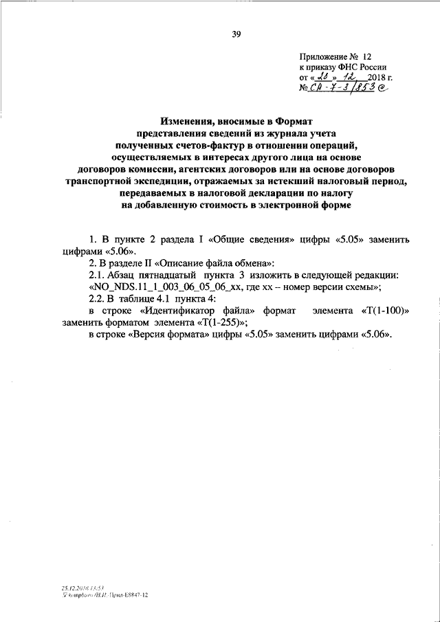 ПРИКАЗ ФНС РФ от 28.12.2018 N СА-7-3/853@