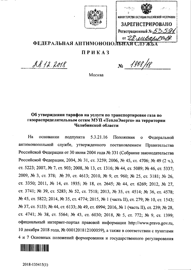 ПРИКАЗ Федеральной антимонопольной службы от 28.12.2018 N 1908/18