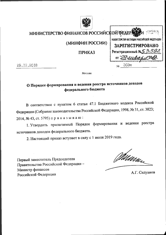 ПРИКАЗ Минфина РФ от 29.12.2018 N 303н