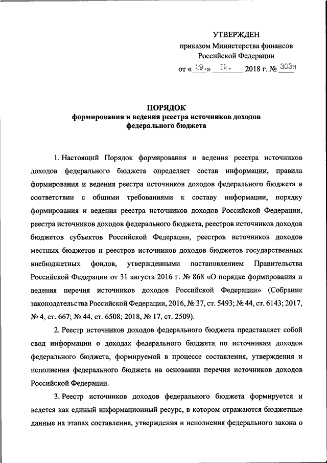 ПРИКАЗ Минфина РФ от 29.12.2018 N 303н