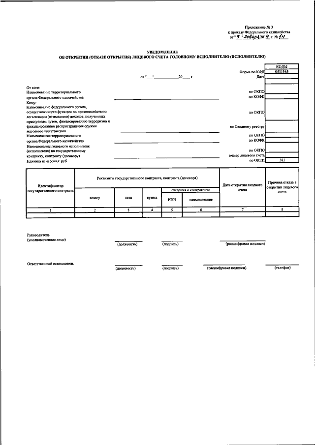 ПРИКАЗ Федерального казначейства от 09.01.2019 N 1н