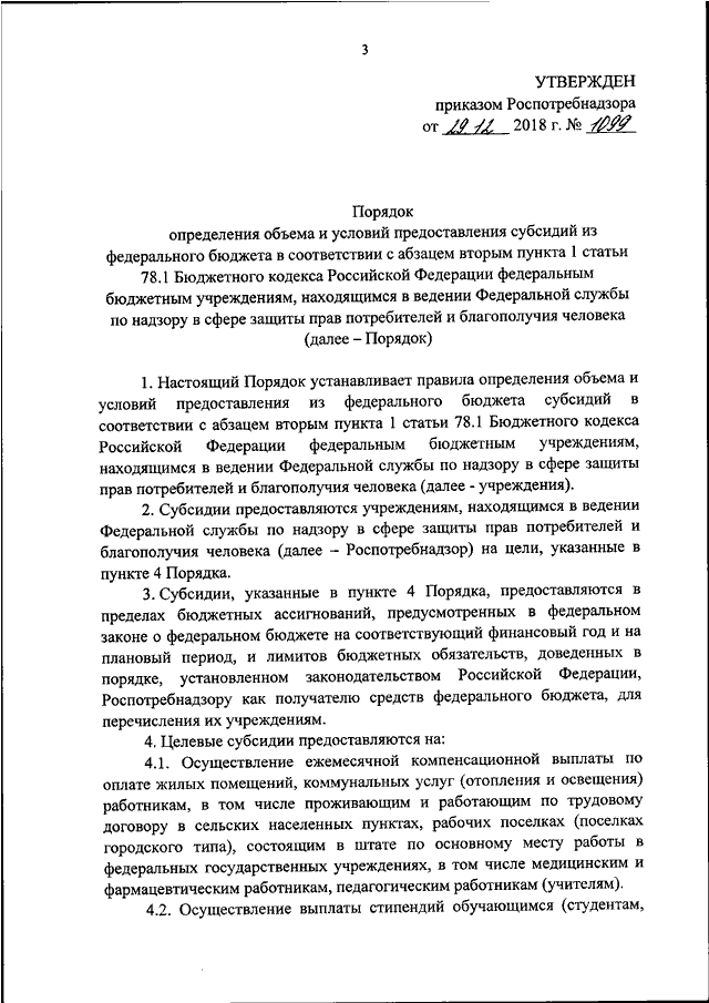 ПРИКАЗ Роспотребнадзора от 29.12.2018 N 1099