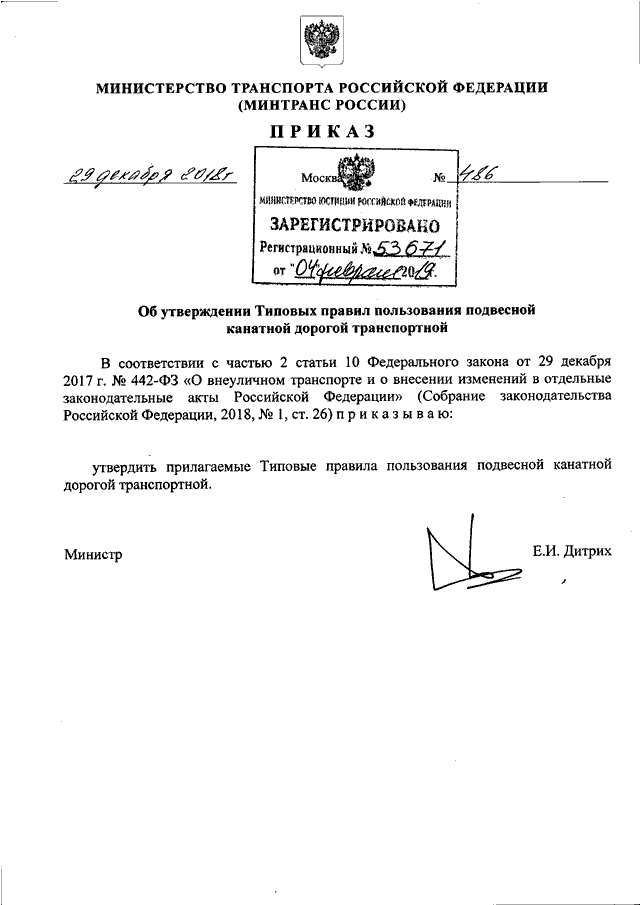 ПРИКАЗ Минтранса РФ от 29.12.2018 N 486