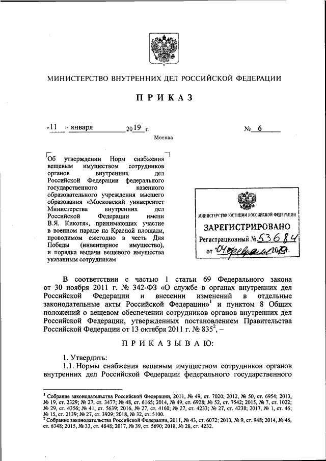 ПРИКАЗ МВД РФ от 11.01.2019 N 6