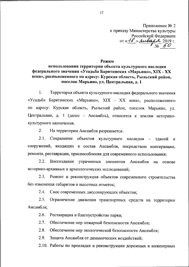 ПРИКАЗ Минкультуры РФ от 18.01.2019 N 50