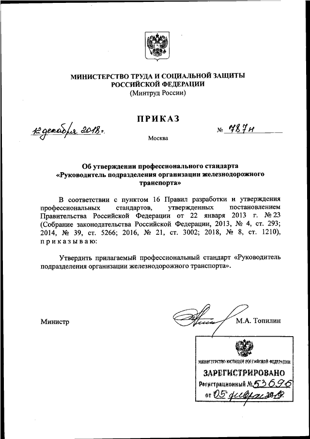 ПРИКАЗ Минтруд РФ от 12.12.2018 N 787н